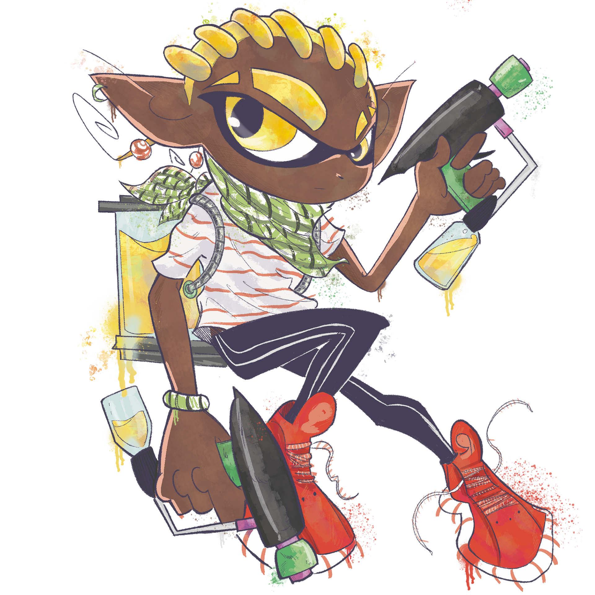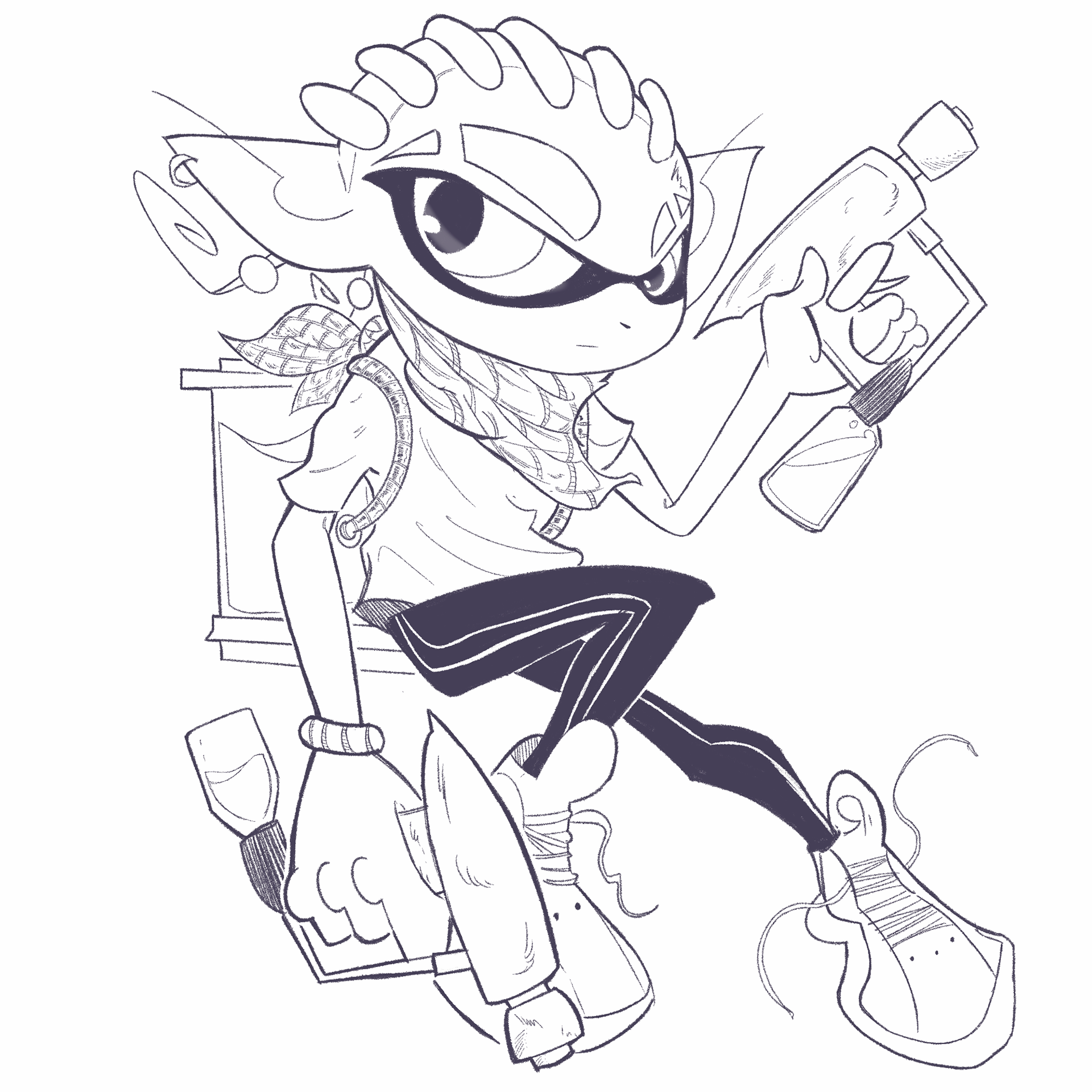 Concept art study for an original character using the style of Nintendo's Splatoon.